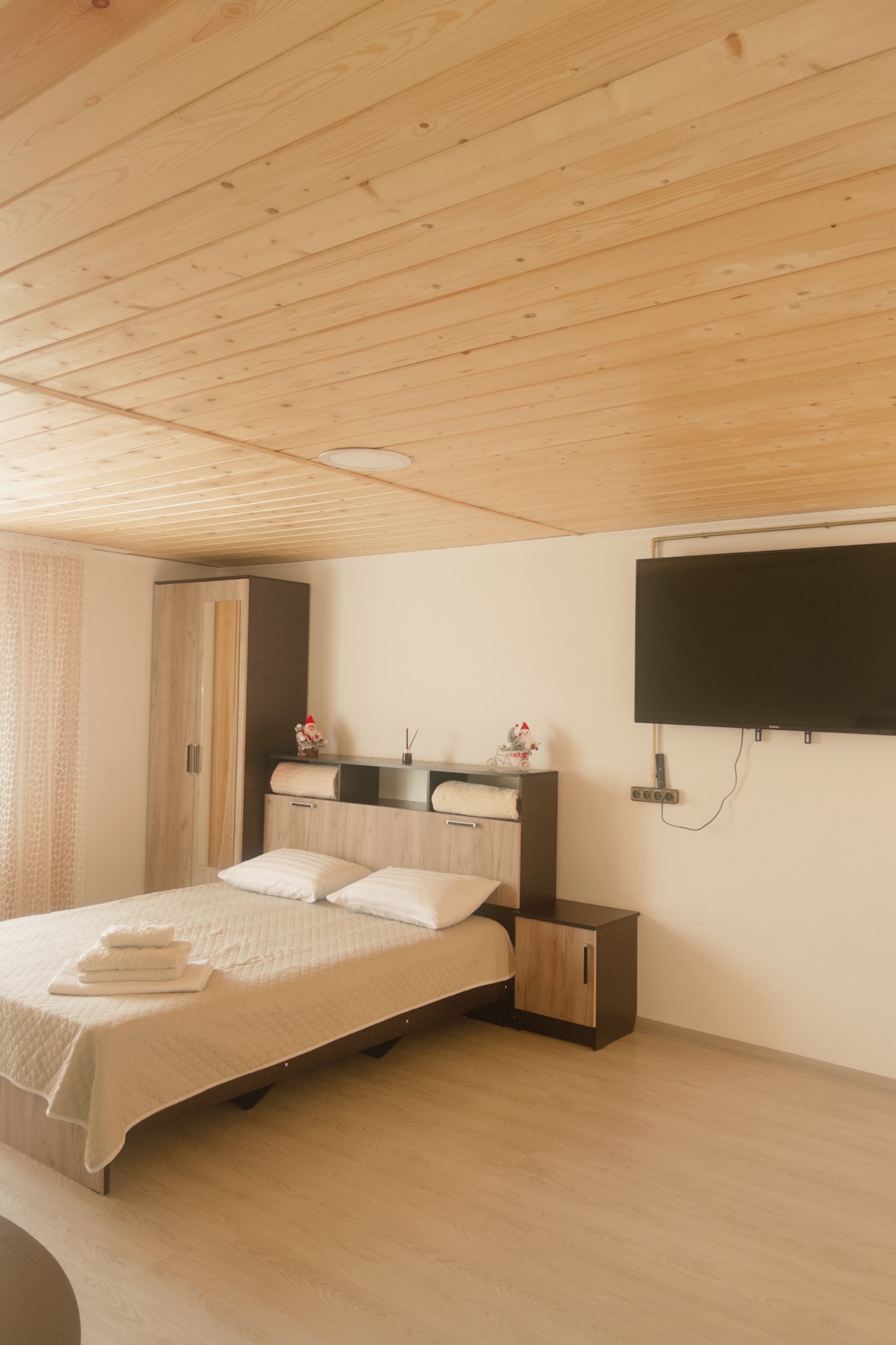 На странице «Фото» мы собрали лучшие снимки гостевого дома Комфорт, чтобы вы могли увидеть все достоинства ещё до приезда. Здесь представлены изображения номеров разных типов — от стандартных двухместных до просторного семейного люкса для четырёх человек. Вы увидите, как оформлены комнаты: светло, аккуратно, с комфортной мебелью, телевизорами, удобствами.